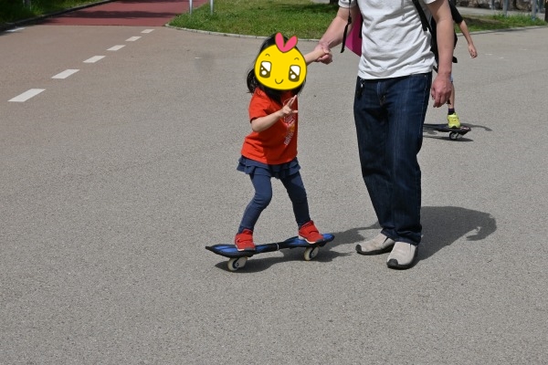 「おおね公園」では、スケート場もあり、リップスティックに乗っている子も多いので、久しぶりに持って来てみましたが、やはり全然乗りたがらず、4才の娘の方が頑張っていました。